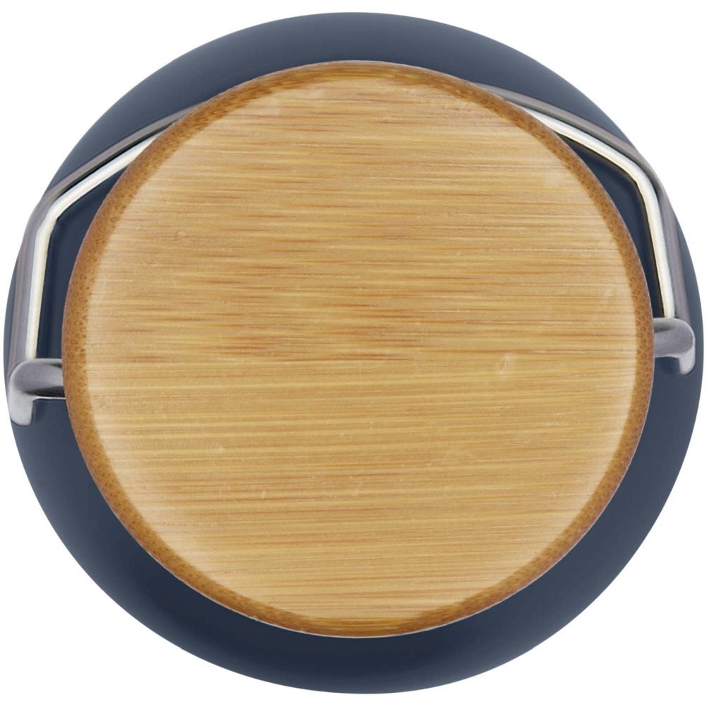 Jednostěnná lahev z nerezové oceli se šroubovacím víčkem. Víko obsahuje bambusovou destičku a rukojeť pro snadné přenášení. Objem je 550 ml. Výrobek je dodáván v dárkové krabičce. Rozměry: 18,8 x O 7,4 cm