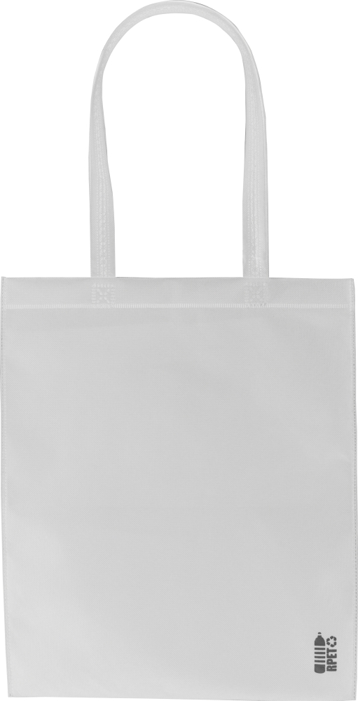 Nákupní taška vyrobená z recyklovaného plastového „netkaného“ materiálu (70 g/m2) s dvěmi dlouhými uchy. Rozměry: 36 x 0,3 x 41 cm