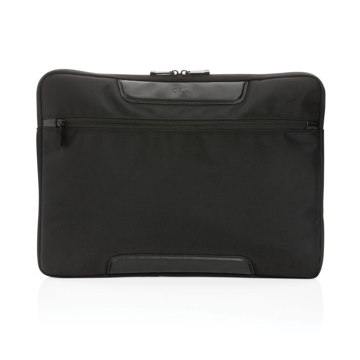Elegantní skvěle vypadající obal na notebook pro každodenní cestování do práce. Vyrobený z pevného recyklovaného polyesteru 1680D s bohatými detaily z umělé kůže a praktickou přední kapsou na zip. Složení: vnější část: 100 % 1680D recyklovaný polyester; vnitřní část (podšívka): 150D recyklovaný polyester. Včetně skenovatelné složky AWARE™ garantující obsah recyklátu. Na výrobu bylo využito 16,38 500ml PET lahví a bylo uspořeno 9,8 litrů vody. Z výtěžku každého prodaného produktu je navíc přispěno 2 % na podporu iniciativy Water.org. Rozměry: 38 x 3 x 28 cm.