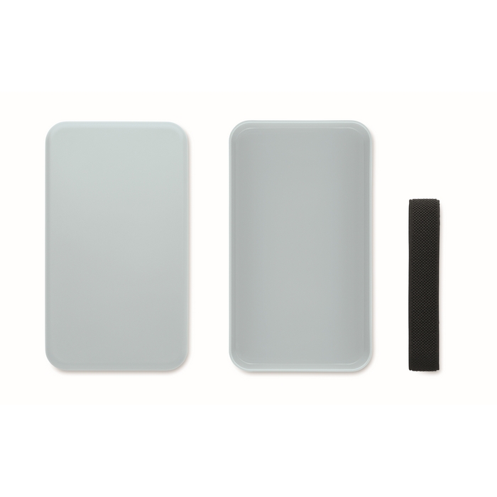 Krabička na oběd z PP s elastickým uzávěrem z RPET. Objem 750 ml.Rozměry: 19,4 x 11 x 6cm