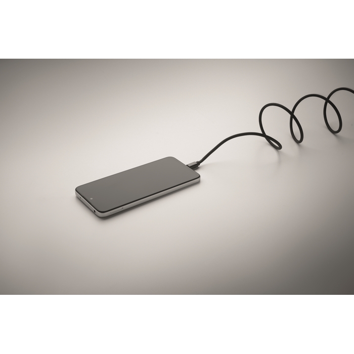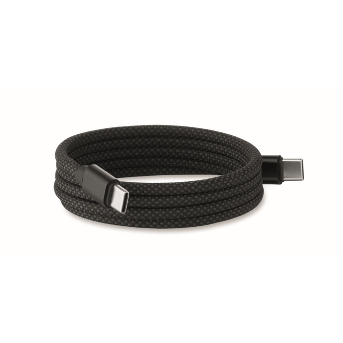 Opletený magnetický kabel proti zamotání vyrobený z RPET s certifikací GRS a hliníku. Konektory Type C, rychlé 60W nabíjení, délka 1 m. Úhledně se stohuje a nikdy se nezamotá. Rozměry: 28 x 35 x 32 cm
