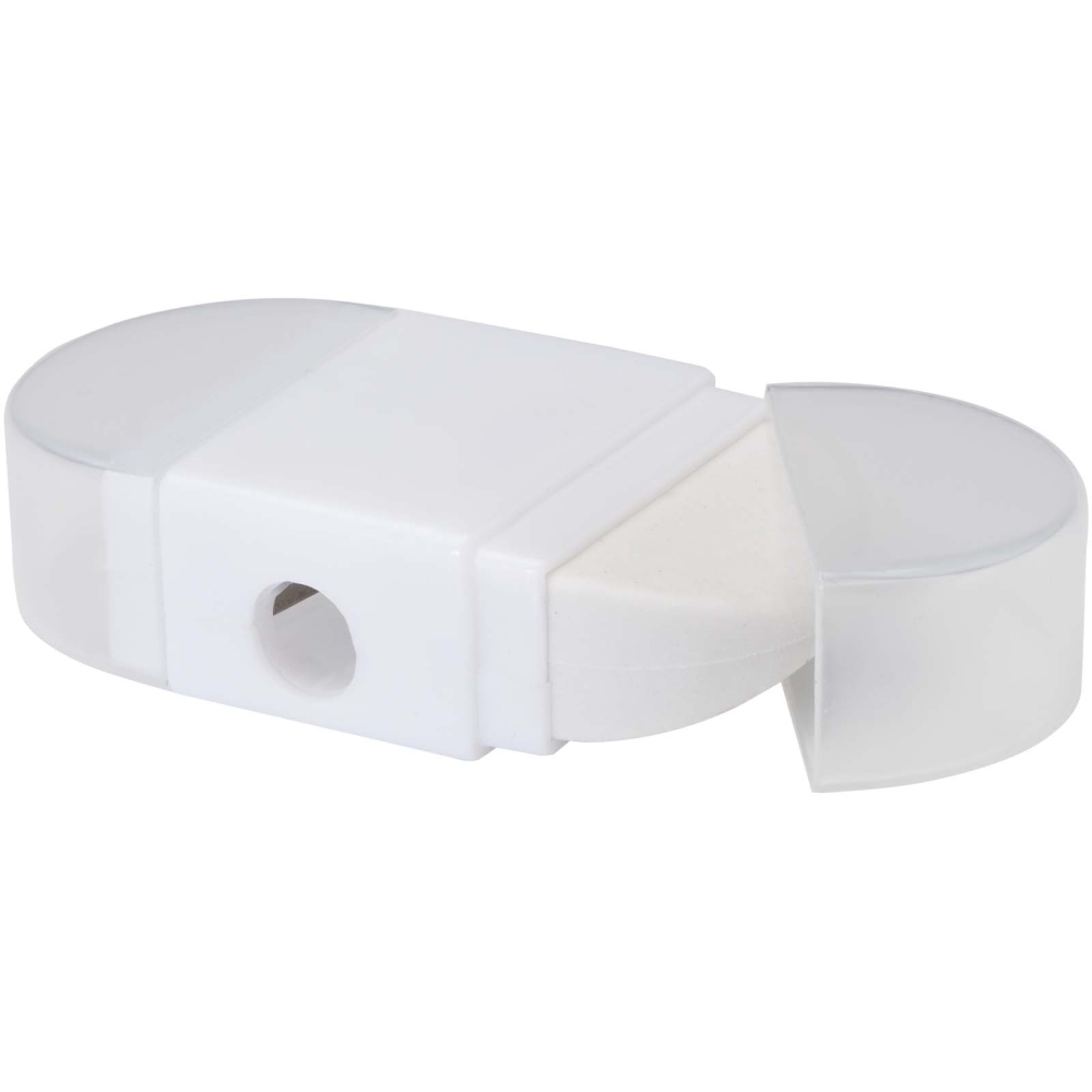 Ořezávátko s gumou s průhlednými uzávěry na obou stranách. Rozměry: 6,2 x 1,6 x 3,3 cm