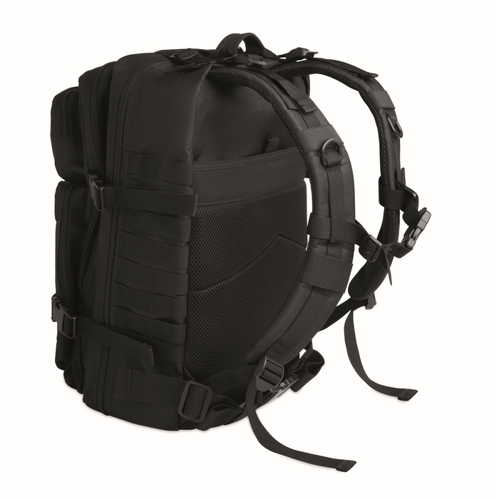Outdoorový 50l batoh z 600D RPET s polstrovaným prostorem na notebook a několika vnitřními přihrádkami, předními kapsami na zip, síťovanými polstrovanými popruhy a zády a bederním pásem. Rozměry: 30 x 14 x 48 cm