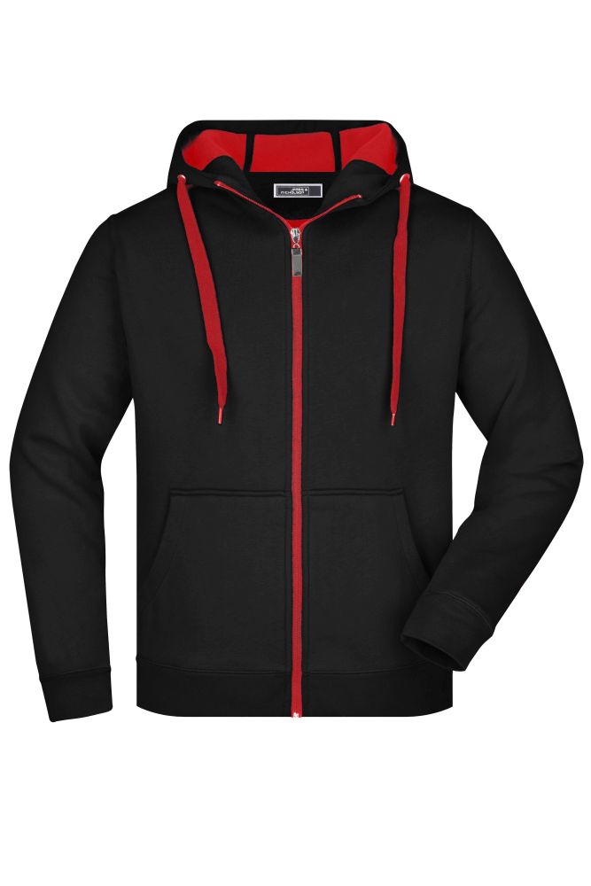 Pánská mikina James & Nicholson Doubleface, černá/červená, velikost L