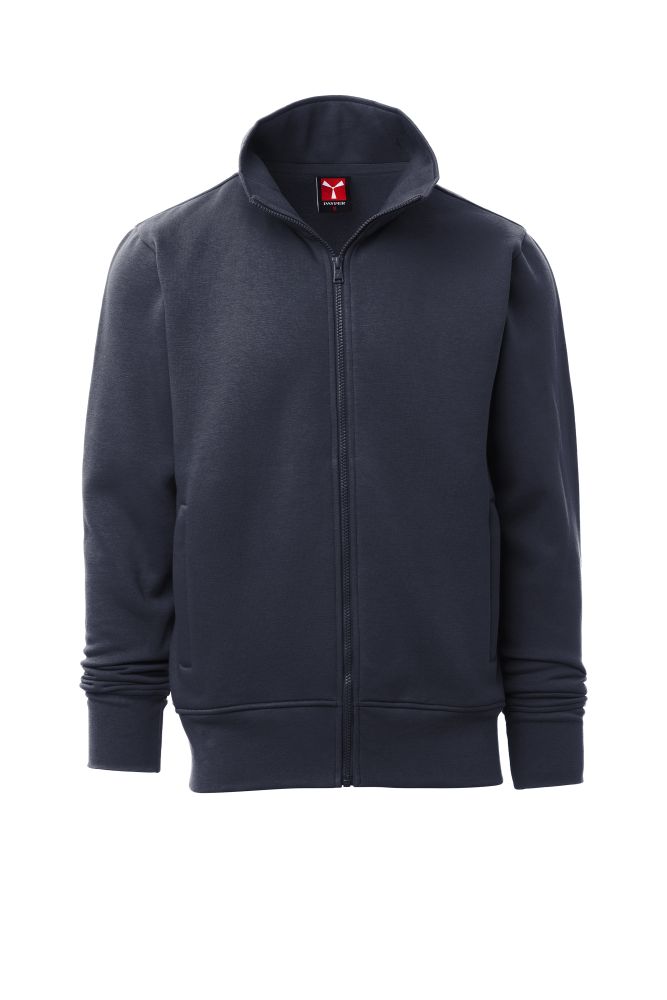 Pánská mikina s barevně sladěným plastovým skrytým celozipem s jedním přizpůsobeným jezdcem, všívané rukávy, dvě prostřižené kapsy se zipem, manžety a pas s elastickým žebrováním, zesílené švy, vyztužená páska sladěné barvy na vnitřní straně krku. Materiál 70 % bavlna a 30 % polyester, 280 gsm.