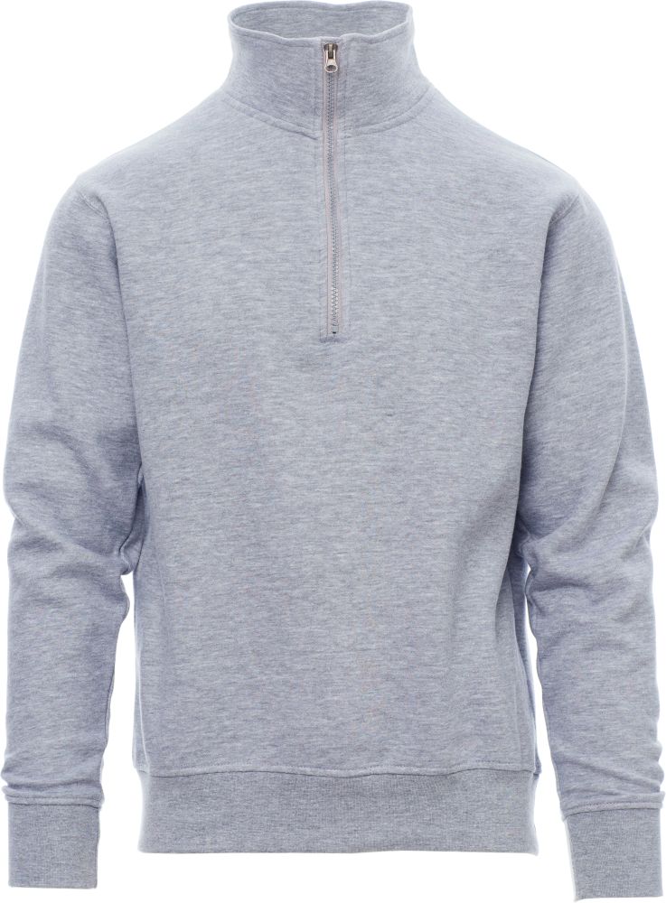 Pánská mikina s barevně sladěným plastovým polozipem s kovovým jezdcem, všívané rukávy, manžety a pas s elastickým žebrováním, zesílené švy. Materiál 70 % bavlna a 30 % polyester, 280 gsm.