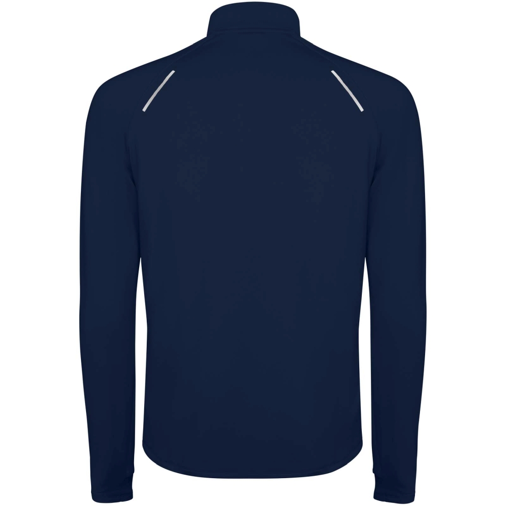 Pánská raglánová mikina s dlouhým rukávem. Límec s obráceným designem na poloviční zip s reflexními detaily. Zesílené kryty švů. Manžety s otvory na palce. Reflexní detaily na zadní straně. Zadní lem je o něco delší než přední. Teplá kartáčovaná vnitřní tkanina.