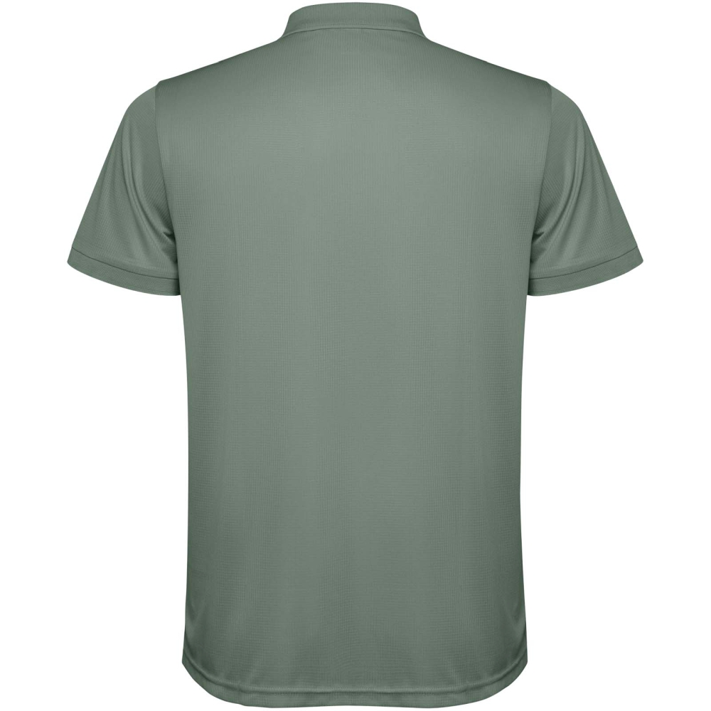 Pánské polo tričko s krátkým rukávem. Zesílené kryté švy ve vnitřním límci. 1×1 žebrované manžety a límeček. Boční švy. Zapínání na 3 knoflíky a boční rozparky.