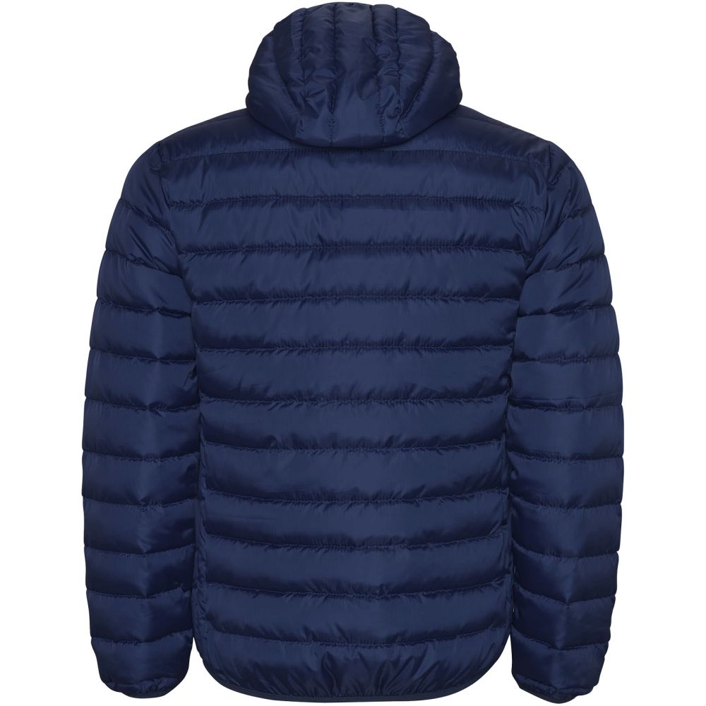 Pánská prošívaná bunda s péřovým efektem a s kapucí. Zipy s obráceným efektem s ochranou brady v odpovídajícím odstínu. Dvě boční kapsy na zip. Elastické lemování manžet, spodního lemu a kapuce v odpovídajícím odstínu. Podšívka v kontrastní barvě. Součástí balení je taštička na složení bundy. Lehký oděv s možností složení. Nepromokavá. Odolná vůči větru.