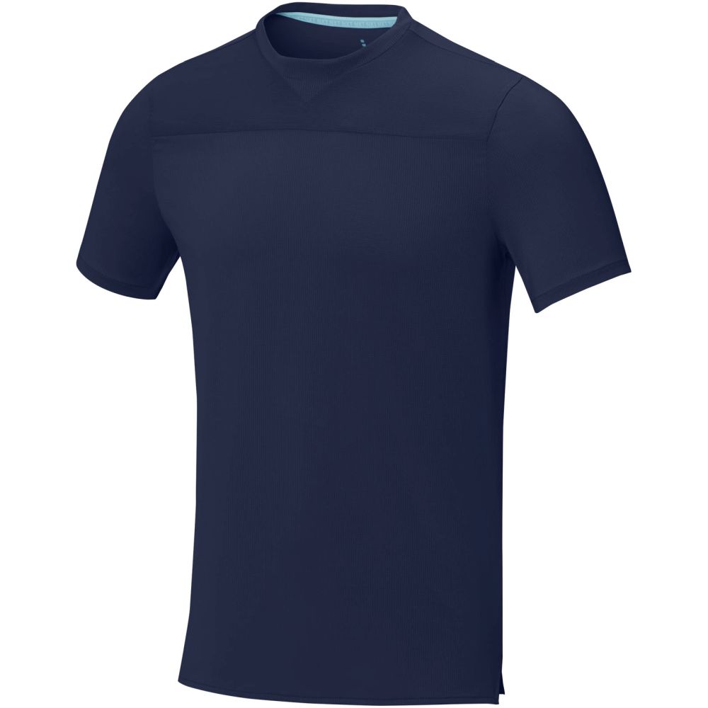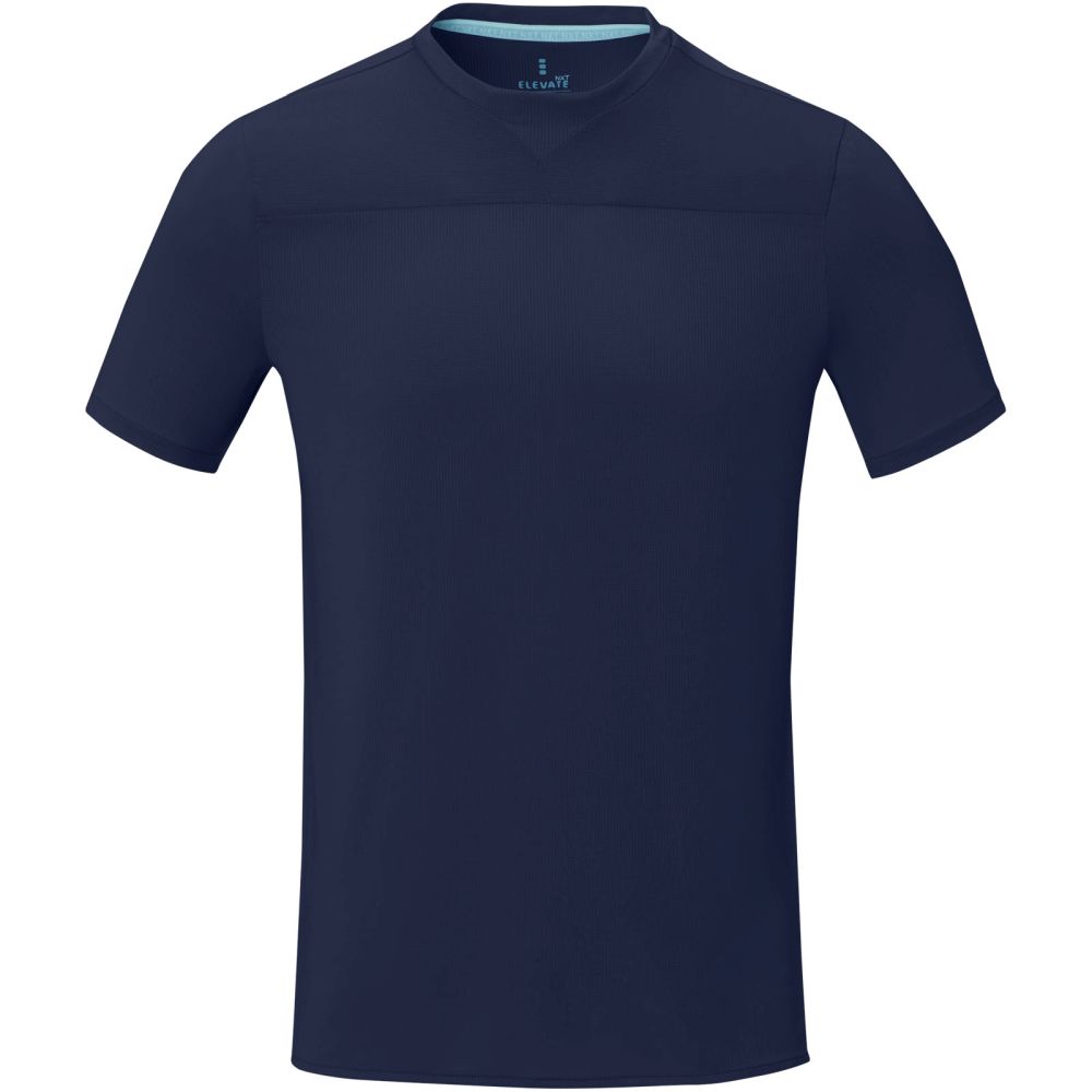 Pánské funkční tričko s krátkým rukávem, značka Elevate. Tričko má kulatý výstřih s detailem ve tvaru V, límec ve shodné tkanině, boční rozparky. Tato položka byla vyvinuta ve spolupráci se společností Waste2Wear. Síťovina s úpravou Cool Fit 90% GRS certifikovaný recyklovaný polyester, 10% Elastan, 160 g/m2.