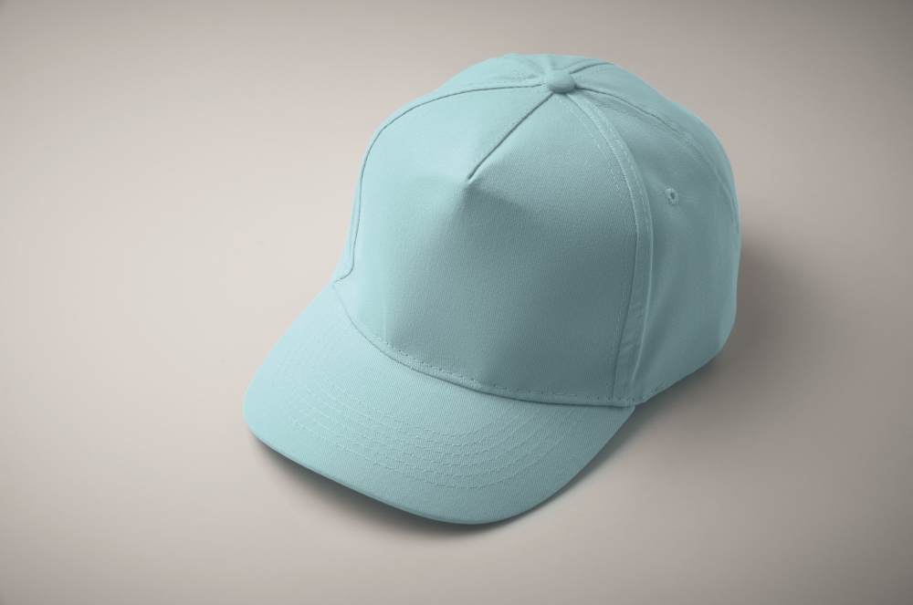Pětipanelová baseballová čepice z bavlněného kepru 180 gr/m2 s nastavitelným zapínáním na suchý zip a 2 vyšívanými očky ve stejné barvě. Velikost 7 1/4. Rozměry: 20 x 17 x 11 cm