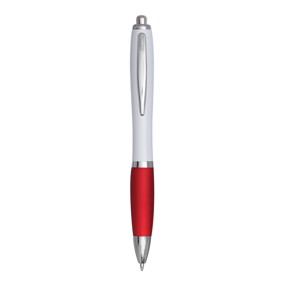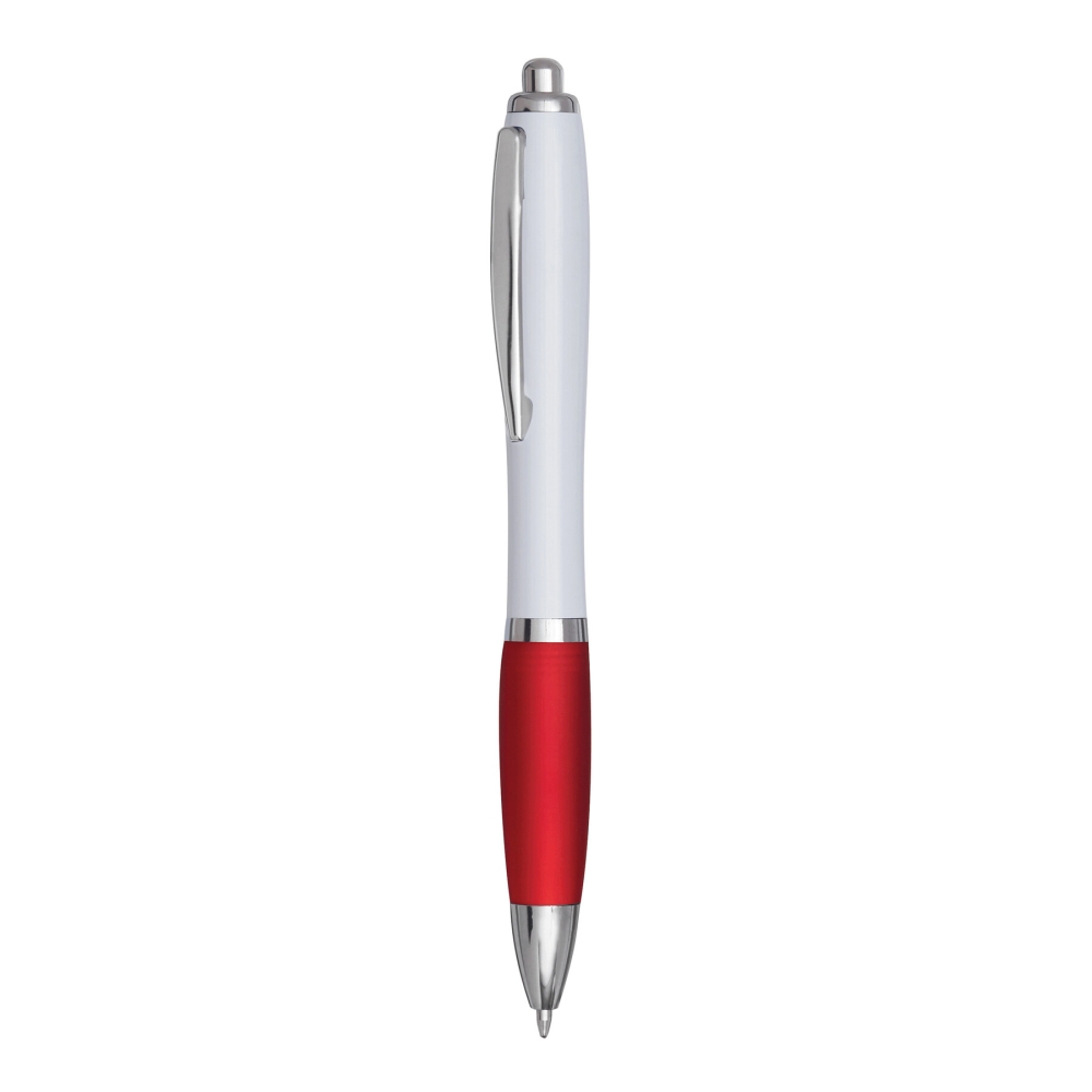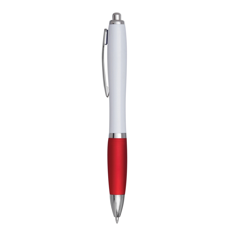Plastová propiska s gumovým úchopem, bílá/červená
