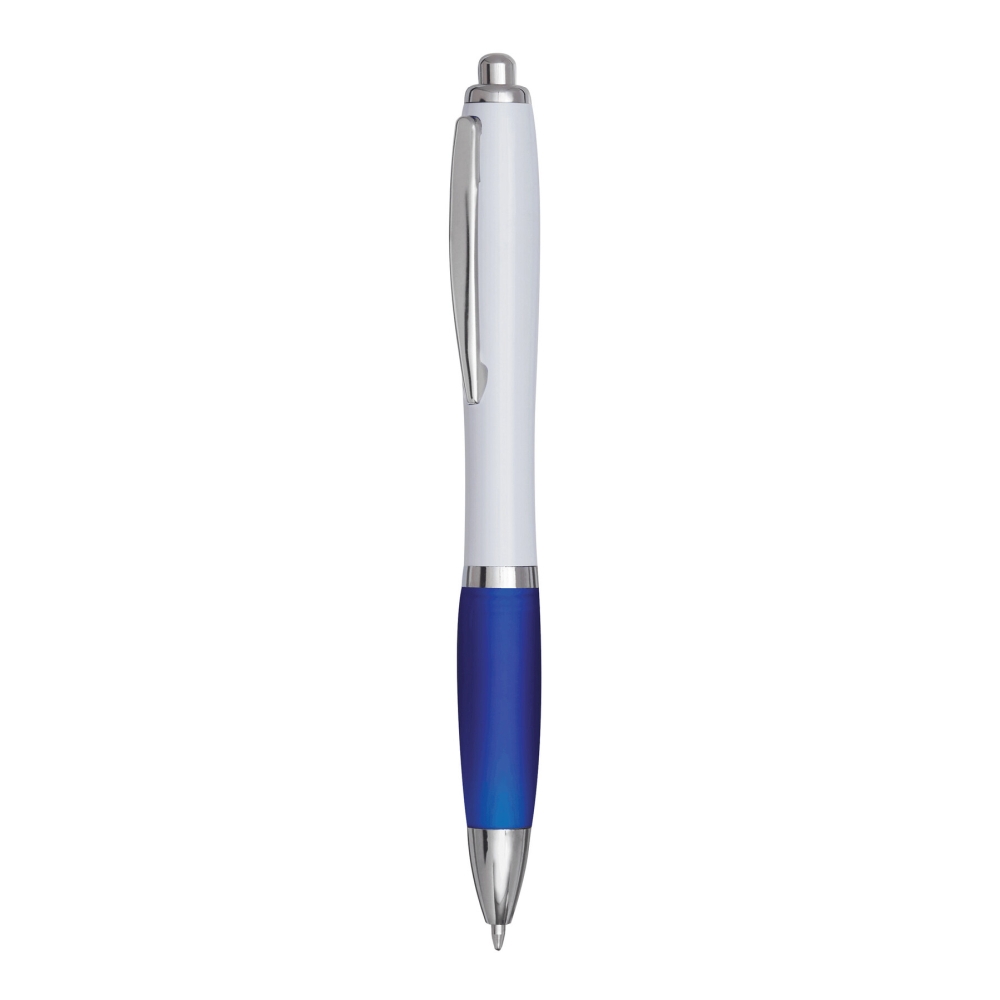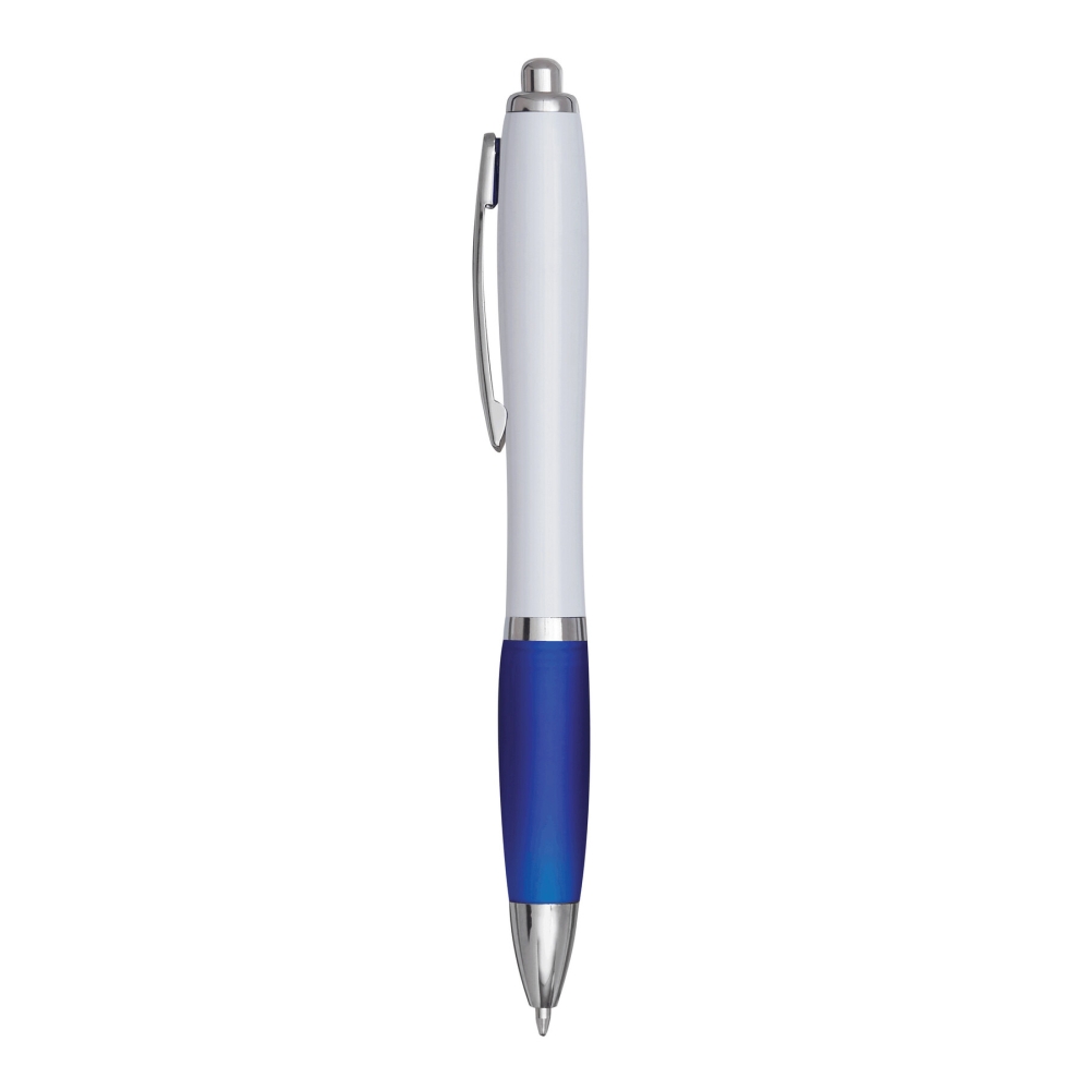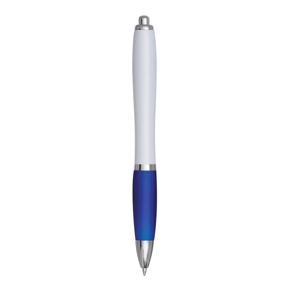 Plastová propiska s gumovým úchopem, bílá/tmavě modrá