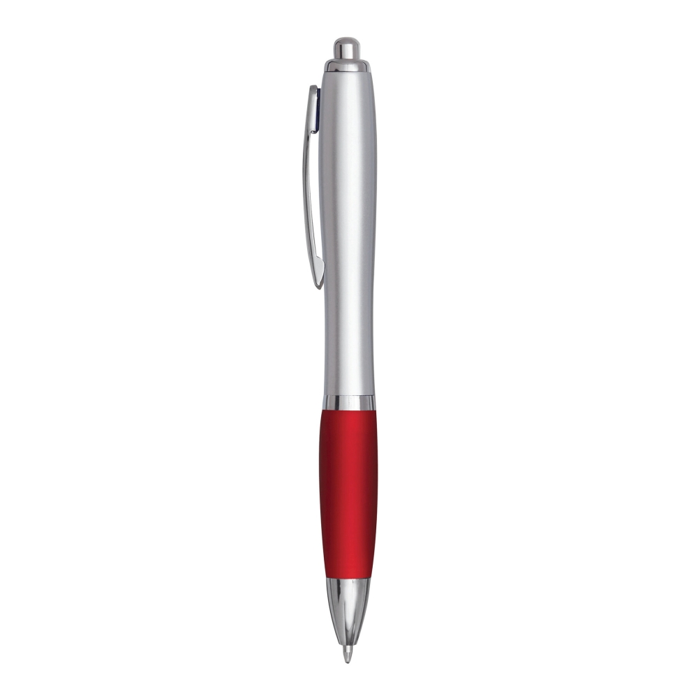 Plastová propiska s gumovým úchopem, stříbrná/červená