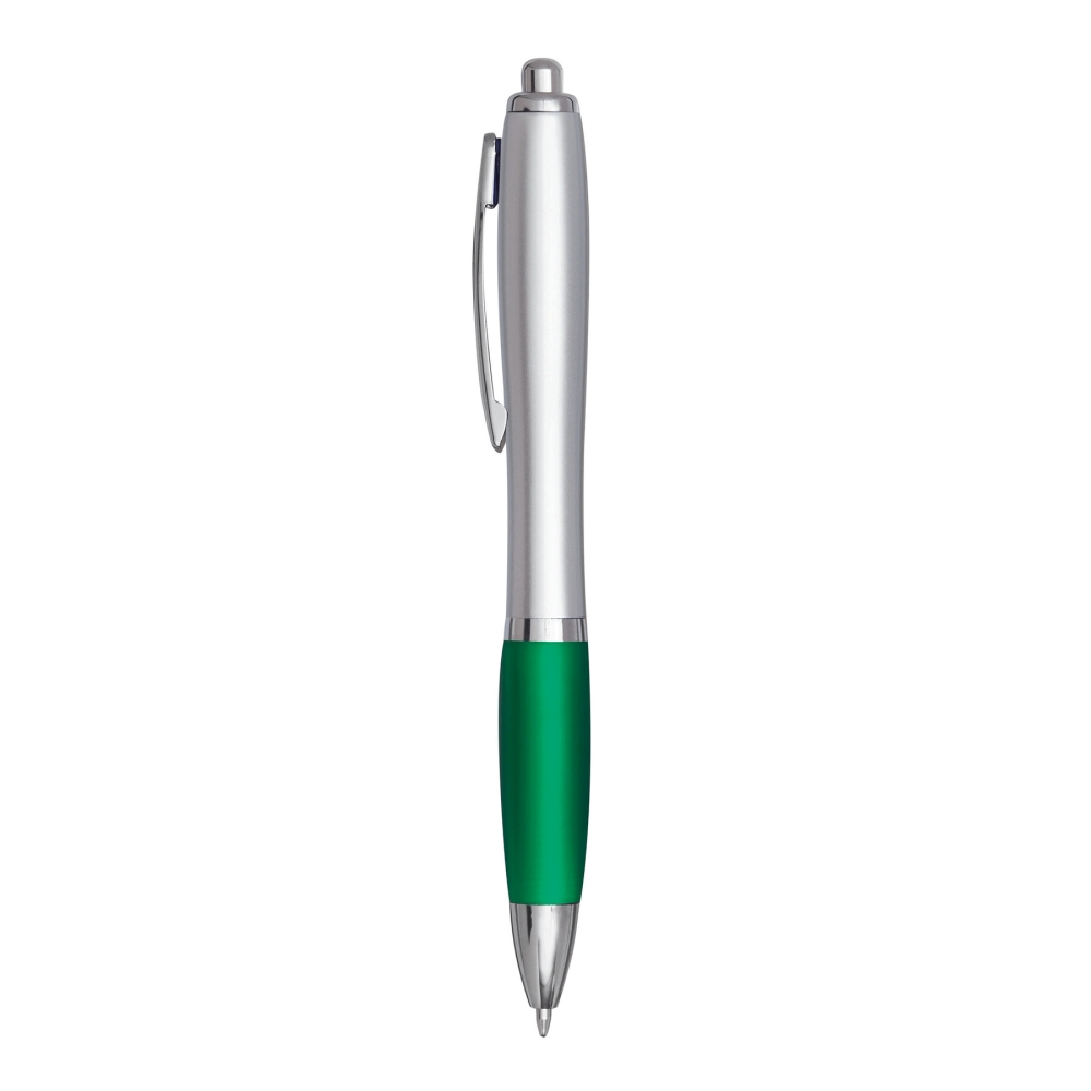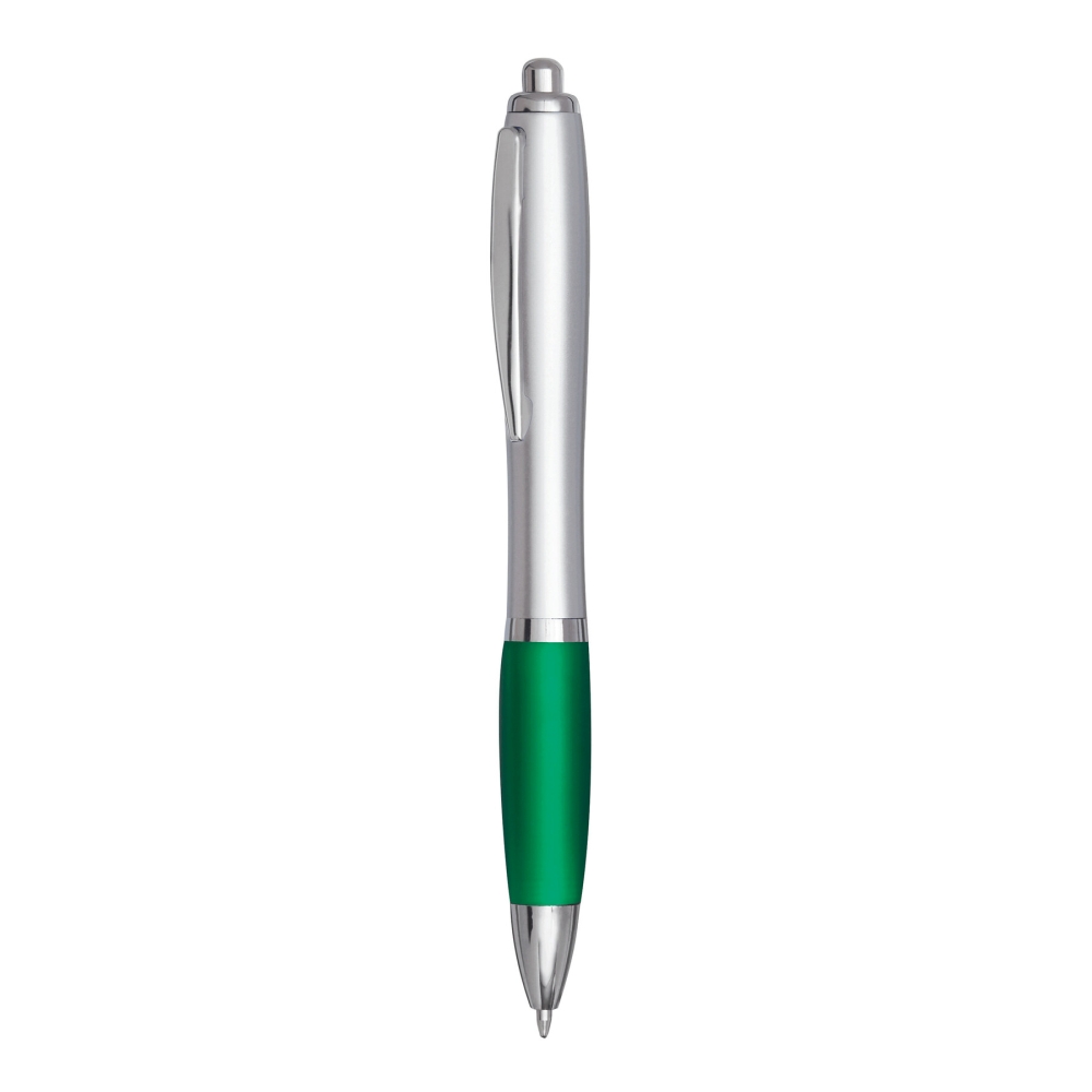 Plastová propiska s gumovým úchopem, stříbrná/středně zelená