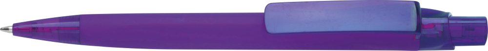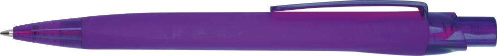 Pogumovaná plastová propiska s velkokapacitní modrou náplní. Rozměry: o 1,1 x 14,5 cm