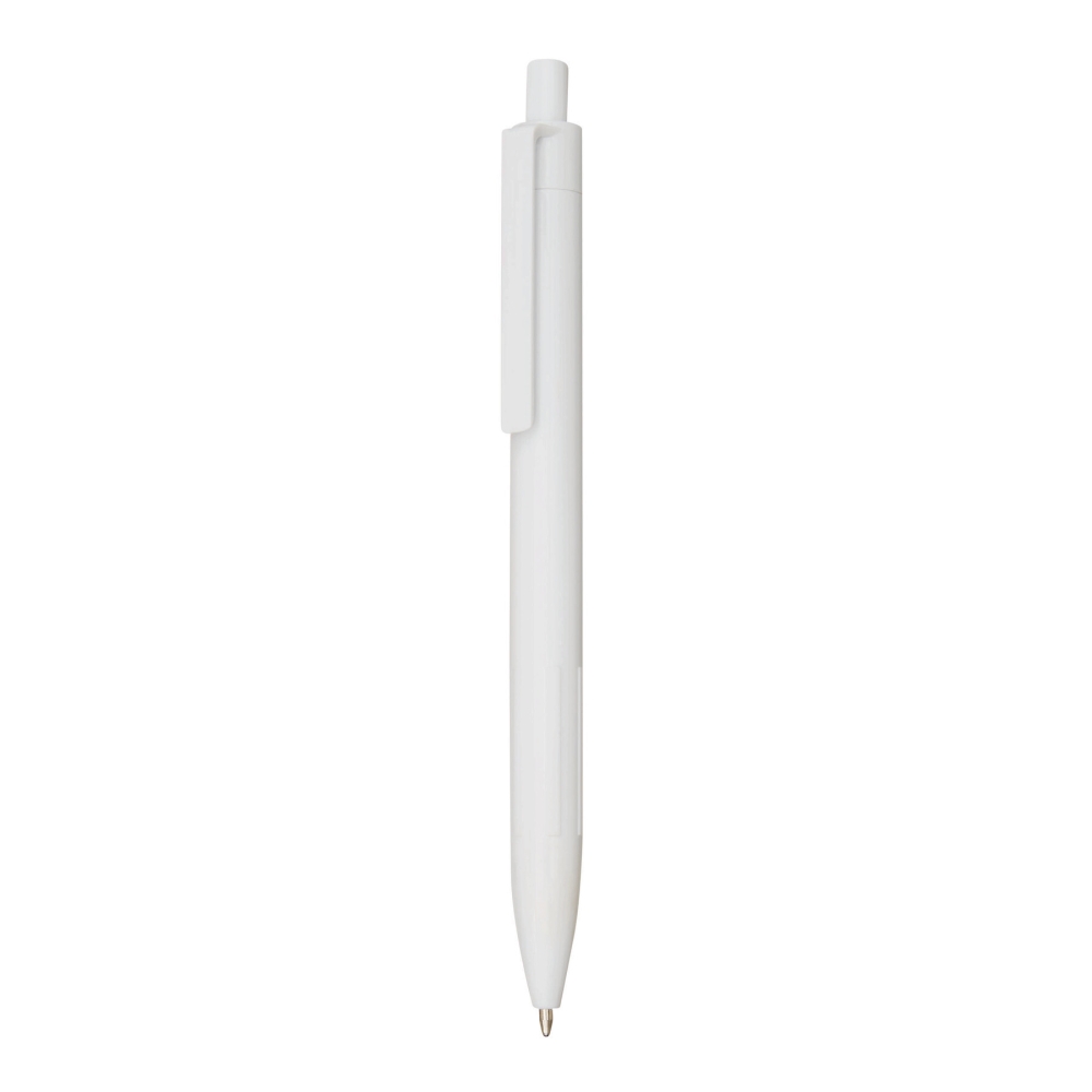 Propiska z recyklovaného plastu, žebrovaná úchopová zóna, klikací mechanismus, modrý inkoust. Rozměry: 13,7 cm
