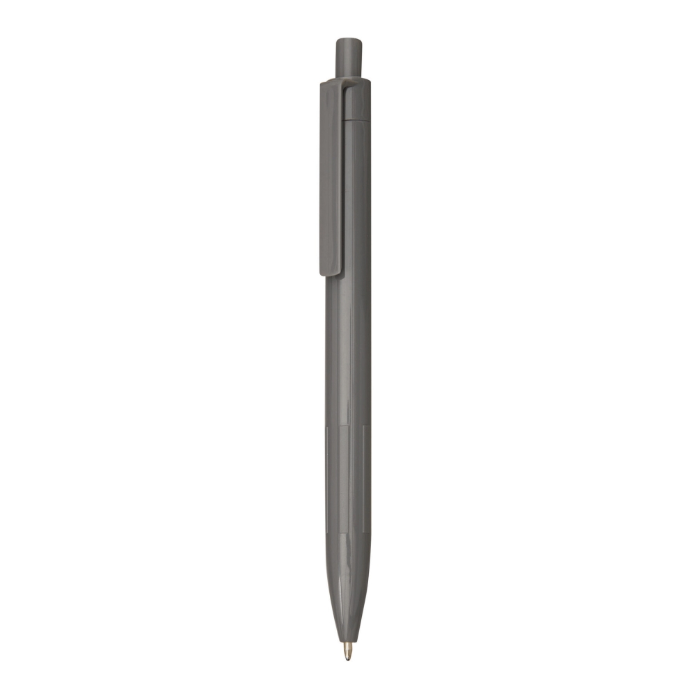 Plastová propiska s žebrovaným úchopem, šedá