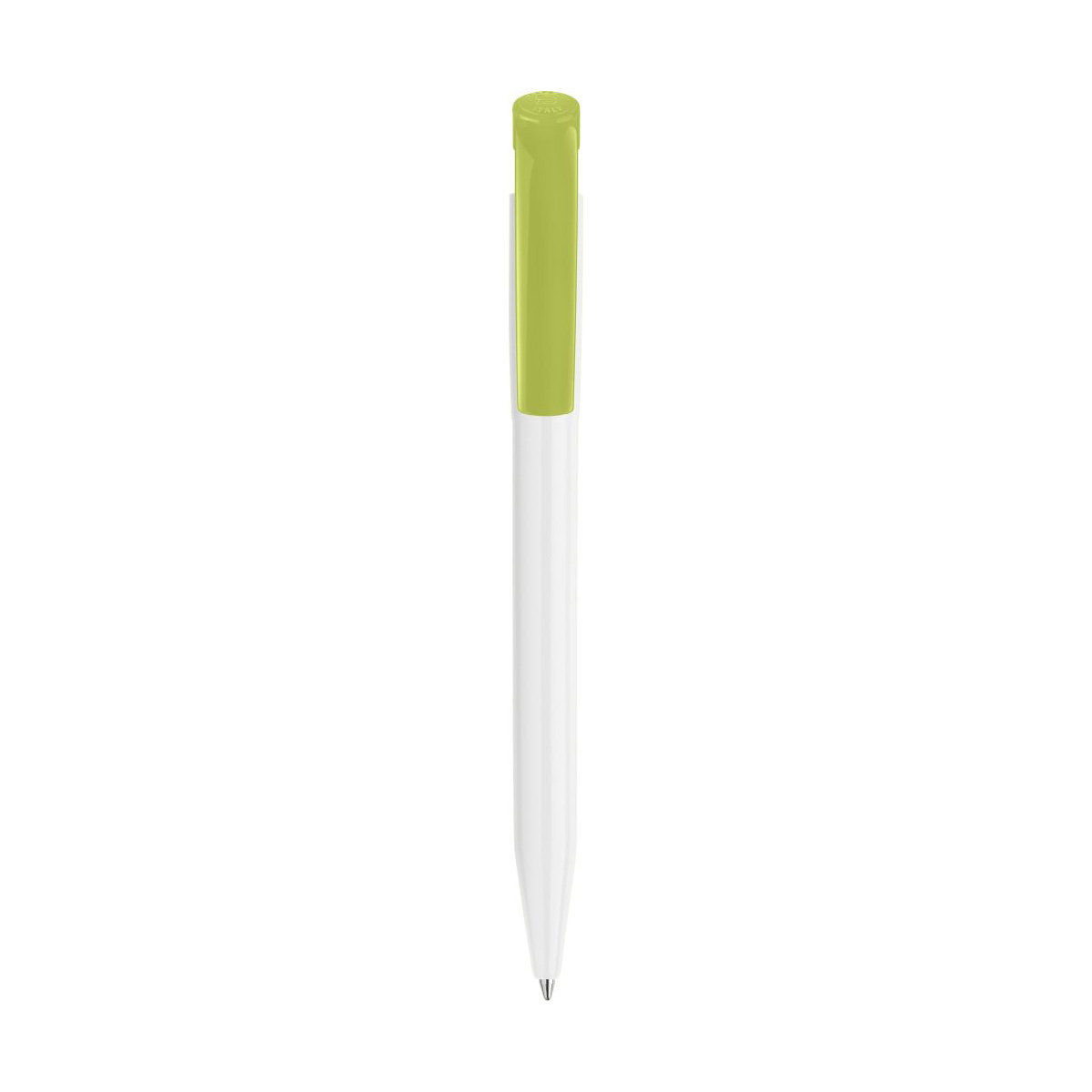 DELIONO Plastová propiska STILOLINEA s modrou náplní, bílé tělo a světle zelený klip