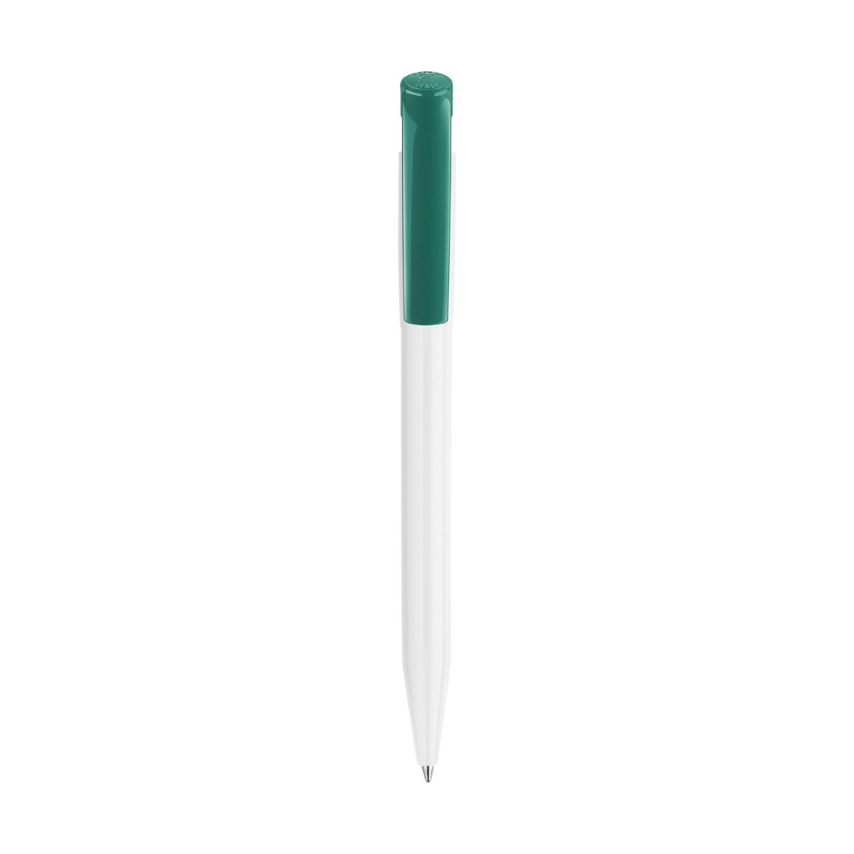DELIONO Plastová propiska STILOLINEA s modrou náplní, bílé tělo a smaragdově zelený klip