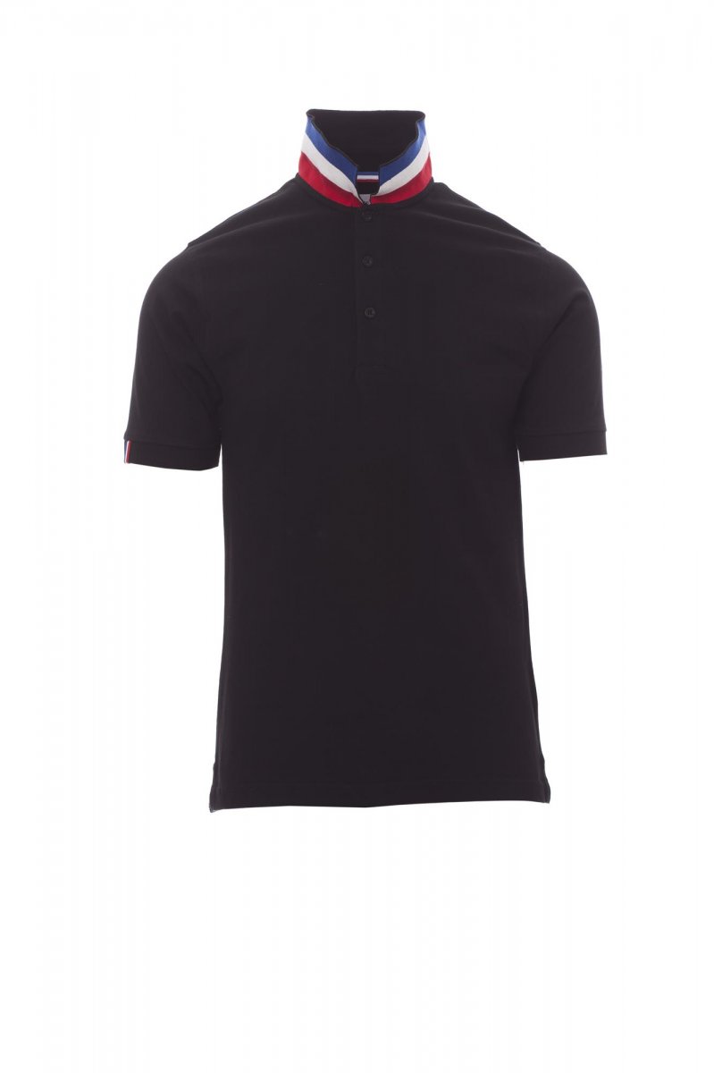 Pánská polokošile s krátkým rukávem s 3 barevně sladěnými perleťovými knoflíky, barevně sladěný límeček s kontrastním rubem v barvách italské vlajky, který je vidět pouze při zvednutí, barevně lemovaný pravý rukáv ve stejné barvě jako límeček, žebrovaný límeček a lemy rukávů, postranní rozparky v barvách italské vlajky, skryté prošití límečku s žerzejovým úpletem rovněž v barvách vlajky, postranní vyztužovací páska, tvarovaná výztuž na spodní straně límečku.