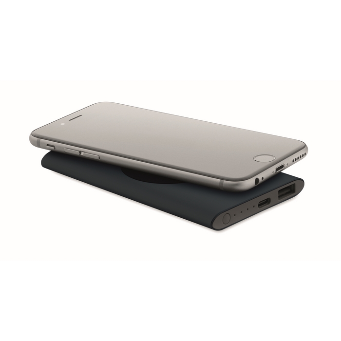 Bezdrátová 15W nabíjecí powerbanka 5000 mAh v pouzdru z recyklovaného hliníku. Vstup: Typ-C. Výstup: 1 x Type-C & 1 x Type-A. Výstupní proud DC5V/2A. Rozměry: 12 x 6,5 x 0,9 cm