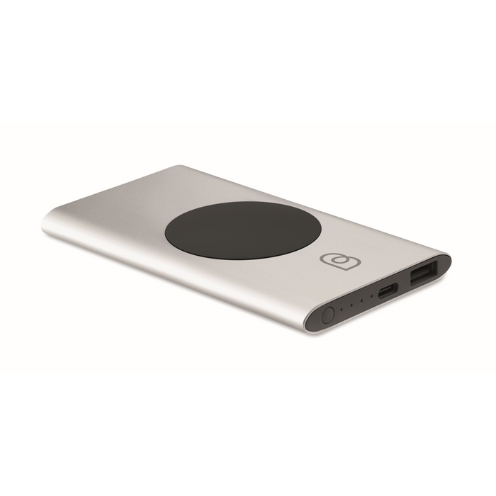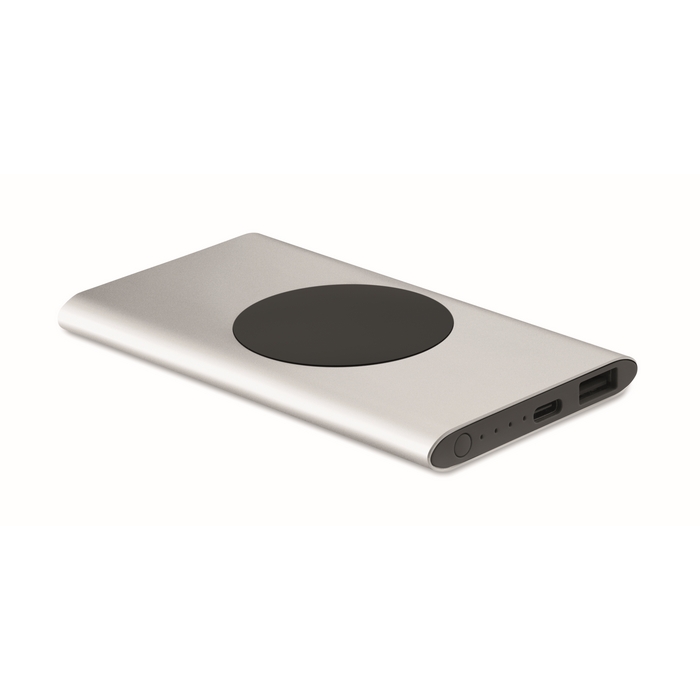 Bezdrátová 15W nabíjecí powerbanka 5000 mAh v pouzdru z recyklovaného hliníku. Vstup: Typ-C. Výstup: 1 x Type-C & 1 x Type-A. Výstupní proud DC5V/2A. Rozměry: 12 x 6,5 x 0,9 cm