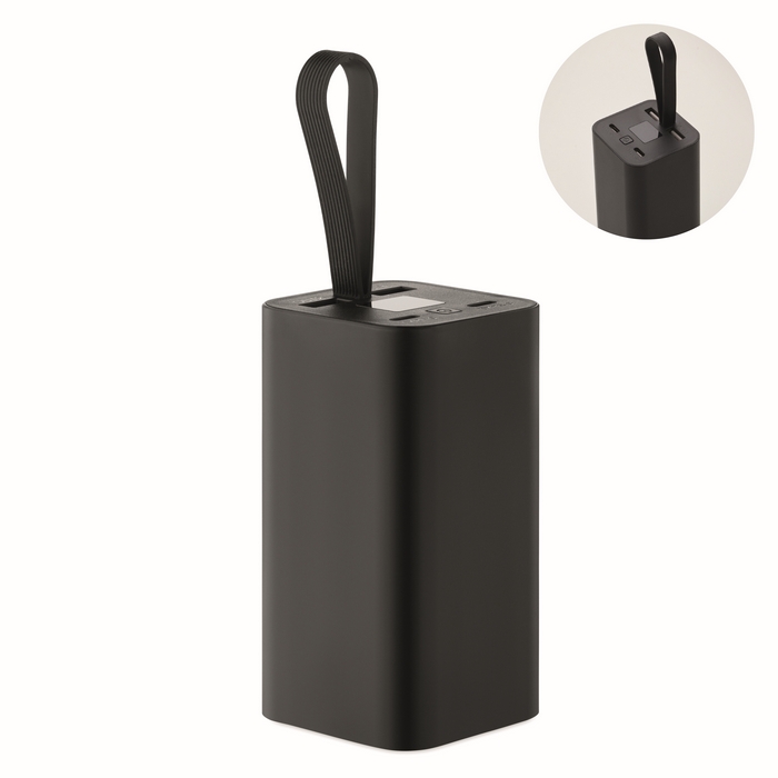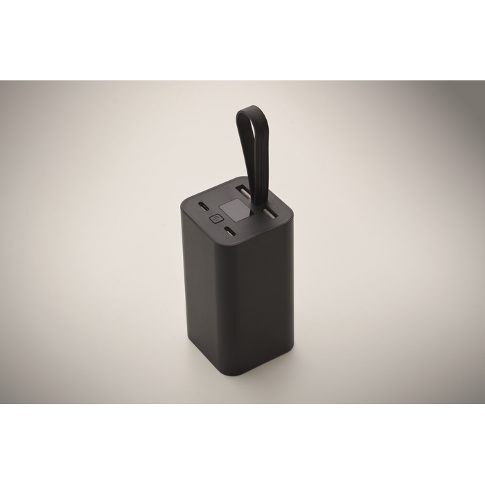 Powerbanka s kapacitou 20.000 mAh z recyklovaného hliníku s digitálním displejem a silikonovým poutkem. Dva výstupy Type-C a dva výstupy USB-A. Podporuje rychlé nabíjení PD 65 W. Rozměry: 93 x 50 x 50 cm