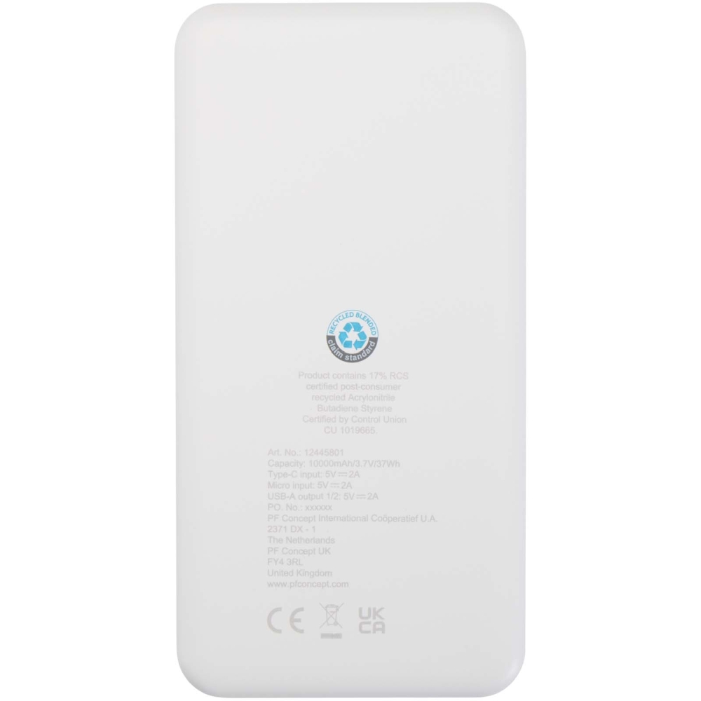 Powerbanka z recyklovaného plastu s kapacitou 10 000 mAh a výkonem 10 W, bílá