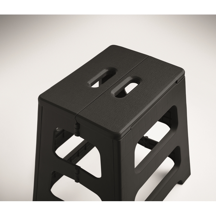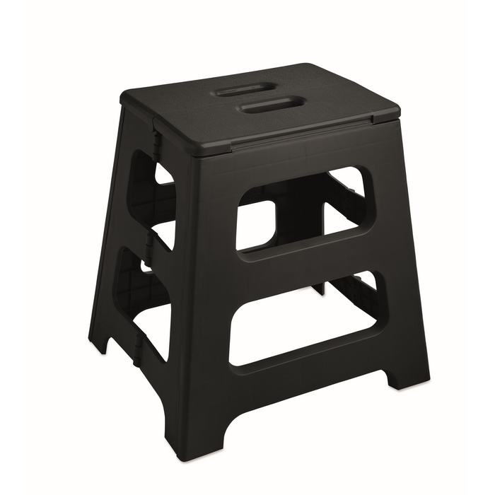 Přenosná skládací stolička z PP plastu s protiskluzovým povrchem. Nosnost až 120 kg. Rozměry: 38.5 x 30.5 x 39 cm