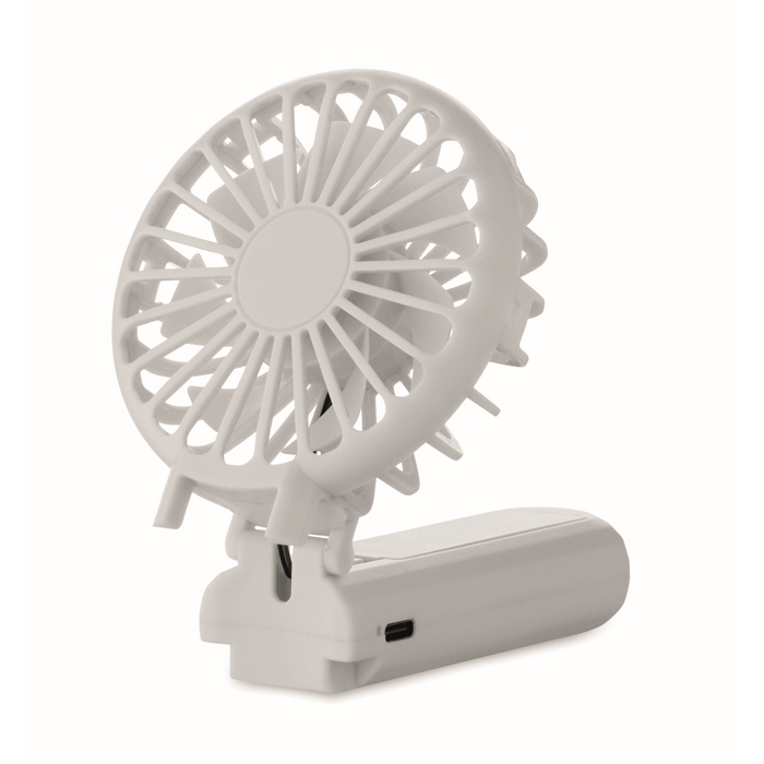 Přenosný skládací ventilátor z ABS plastu se 3 rychlostmi. Lze použít jako ruční nebo stolní ventilátor. Součástí balení je 1 vyměnitelná a dobíjecí 14500 lithiová baterie s kapacitou 500 mAh. Rozměry: 8 x 17.2 x 2.7 cm