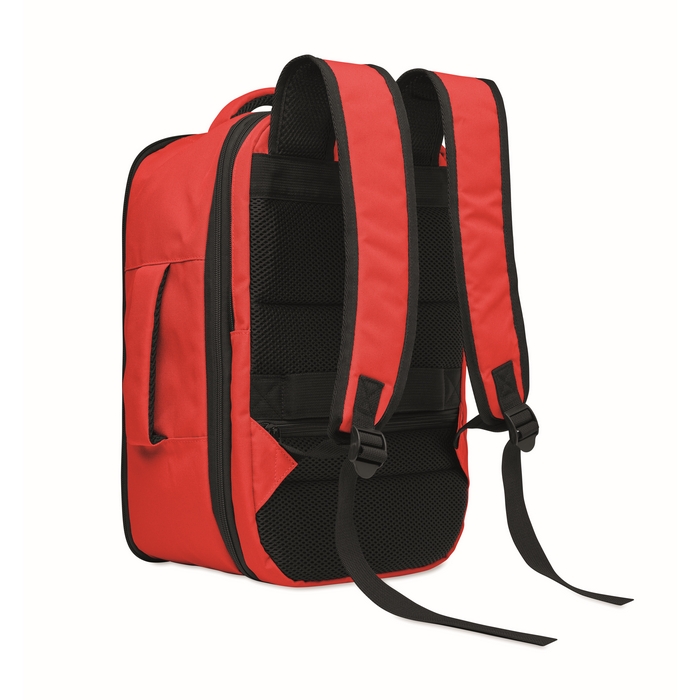Kabinový batoh vyrobený z polyesteru 600D RPET s otevíráním pod úhlem 180o. Hlavní přihrádka se dvěma otevřenými oddíly, polstrovaná kapsa na 15 notebook a popruh na zavazadlo. Rozměry: 25 x 20 x 40 cm