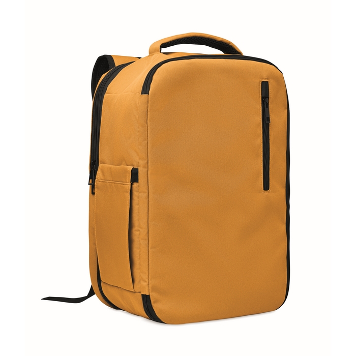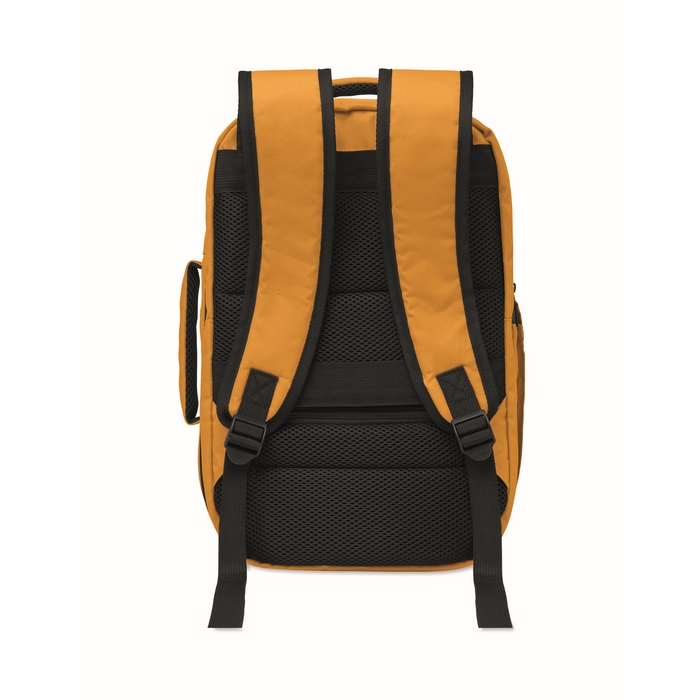 Kabinový batoh vyrobený z polyesteru 600D RPET s otevíráním pod úhlem 180o. Hlavní přihrádka se dvěma otevřenými oddíly, polstrovaná kapsa na 15 notebook a popruh na zavazadlo. Rozměry: 25 x 20 x 40 cm
