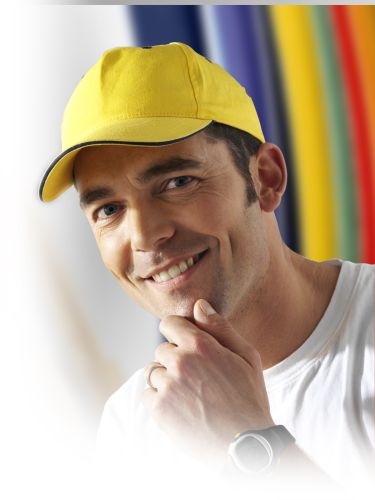 Pětipanelová bavlněná čepice se sendvičovým kšiltem a zapínáním na suchý zip. Materiál 100% bavlna. Rozměry: O 19 × 13 cm.