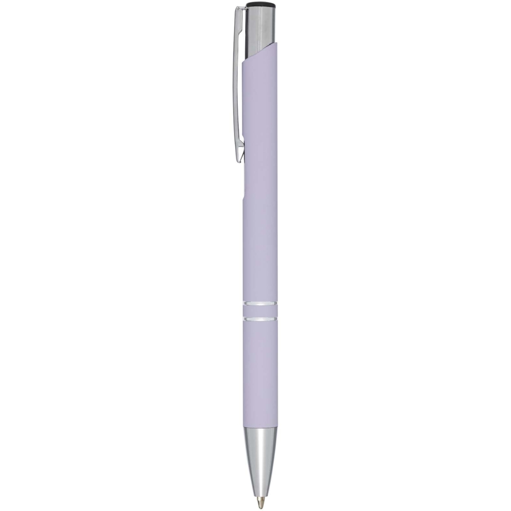Díky pogumovanému povrchu má pero měkký úchop a laserové rytí odhalí stříbrnou spodní vrstvu. Kuličkové pero se stiskacím mechanismem, povrchem potaženým černou pryží, detaily z chromu a horní částí z černého ABS plastu. Rozměry: 13,5 x O 0,8 cm