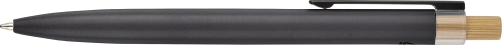 Propiska z recyklovaného hliníku s lakovaným tlačítkem, lemováním z rPET a kovovým klipem. S gravírovaným logem z recyklovaného materiálu. Přibližná délka psaní 700 metrů. Modrý inkoust. Rozměry: 1 cm x 14 cm x 1,34 cm.