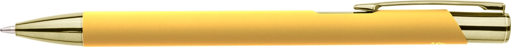 Propiska z recyklovaného hliníku s pogumovaným povrchem a sladěnými plastovými a kovovými detaily s UV vrstvou. Po gravírování se objeví lesklý zrcadlový efekt. S gravírovaným logem z recyklovaného materiálu. Modrý inkoust. Rozměry: 1 cm x 1,3 cm x 13,8 cm.