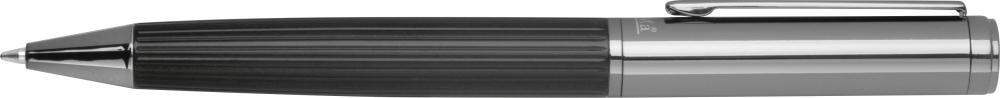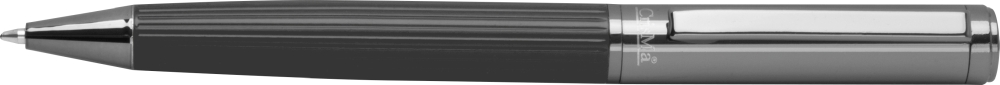 CrisMa propiska s vroubkovaným úchopem, modrou náplní a s malým logem CrisMa pod klipem . Rozměry: o 1,1 x 14,2 cm