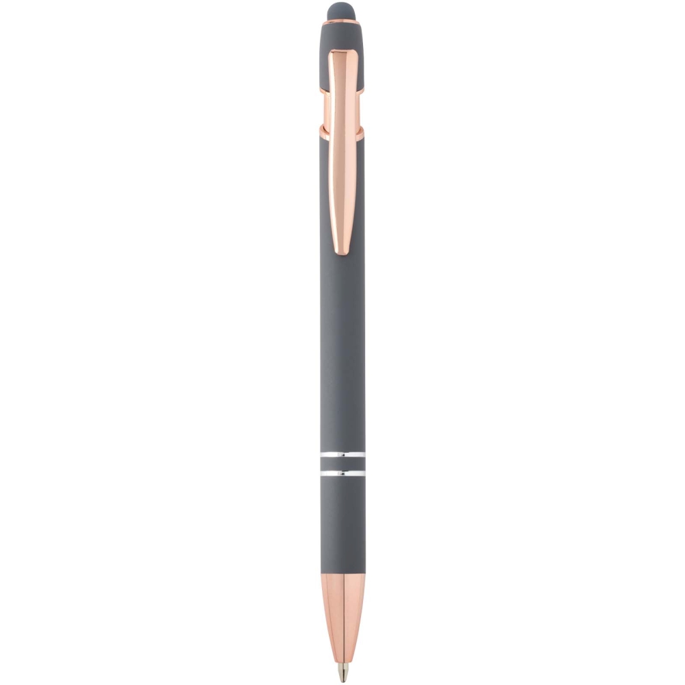 Propiskas povrchovou úpravou z růžového zlata má tělo vyrobené z recyklovaného hliníku a dotykový stylus vyrobený ze silikonu. Snižuje také množství odpadu na skládkách a pomáhá šetřit přírodní zdroje s cílem snížit emise skleníkových plynů. Barva inkoustu: Černá. Délka psaní: 800 metrů. Rozměr hrotu: 1,0 mm. Rozměry: 14,4 x O 1 cm