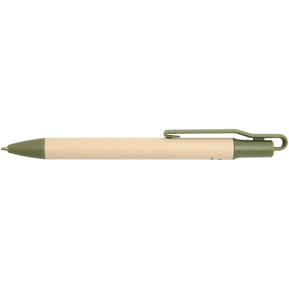 Propiska vyrobená z třtinového papíru. Barva inkoustu pera: Modrá. Rozměr hrotu: 1,00 mm. Délka psaní: 1000 metrů. Rozměry: 14,6 x O 1,1 cm