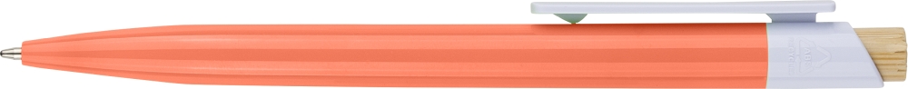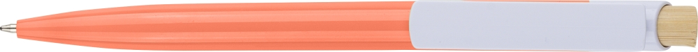 Propiska z recyklovaného ABS plastu s bambusovým tlačítkem a bílým klipem, vhodné pro digitální tisk. Přibližná délka psaní 600 metrů. Modrý inkoust. Rozměry: 1 cm x 1,4 cm x 14,4 cm.