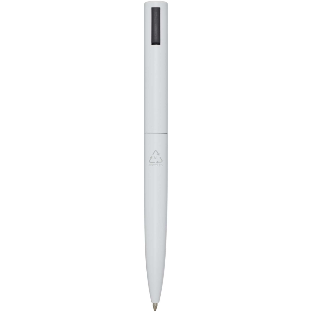Propiska s horní částí těla vyrobenou z recyklovaného plastu a spodní částí z recyklovaného hliníku. Spona je vyrobena ze železa. Barva inkoustu: Modrá. Délka psaní: 1000 metrů. Rozměr hrotu: 1,0 mm. Rozměry: 14,5 x O 1,5 cm