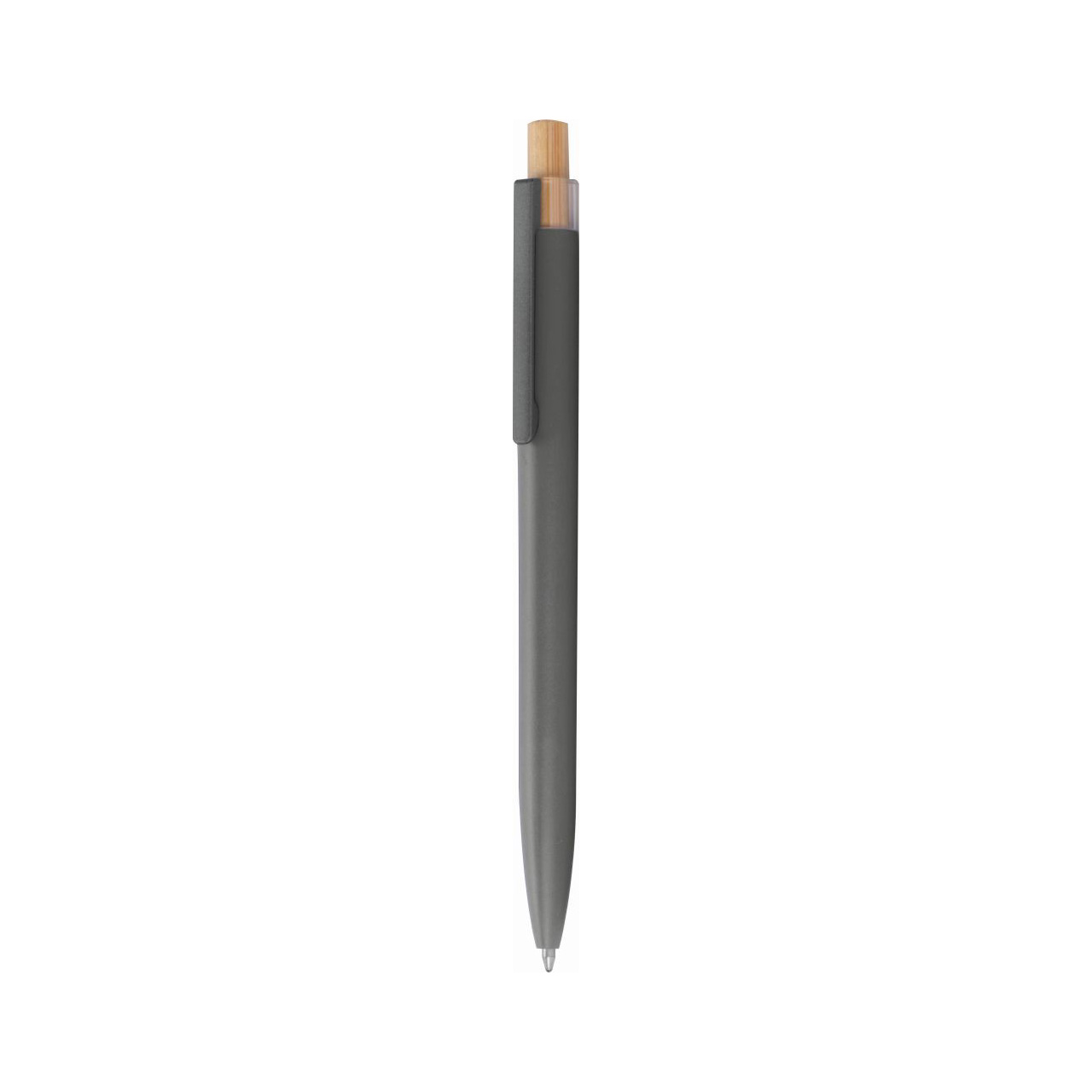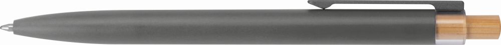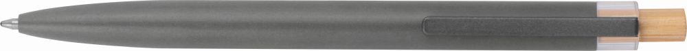 Kuličkové pero z recyklovaného hliníku s kovovým klipem a bambusovým tlačítkem. Pero má semi-gelovou náplň, díky které má pero sytou barvu a umožňuje lehké psaní. Rozměry: O 1 × 14,5 cm.