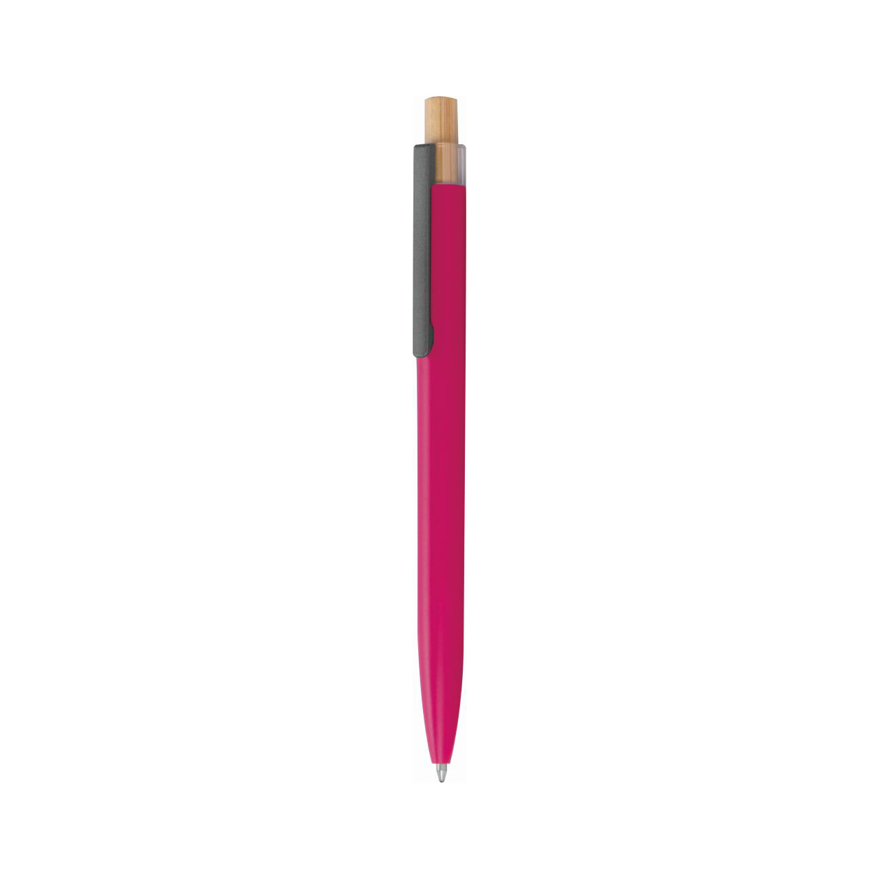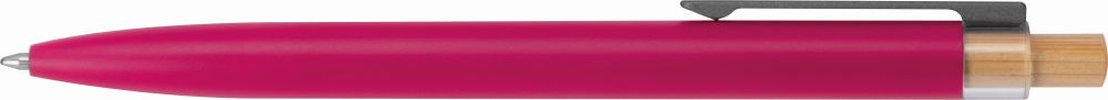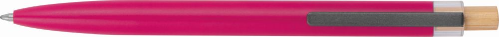 Kuličkové pero z recyklovaného hliníku s kovovým klipem a bambusovým tlačítkem. Pero má semi-gelovou náplň, díky které má pero sytou barvu a umožňuje lehké psaní. Rozměry: O 1 × 14,5 cm.