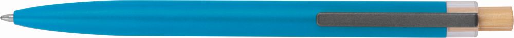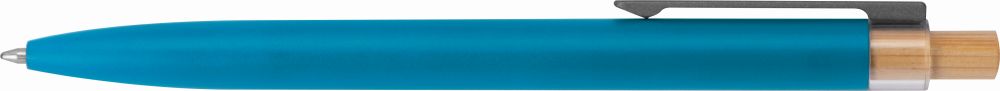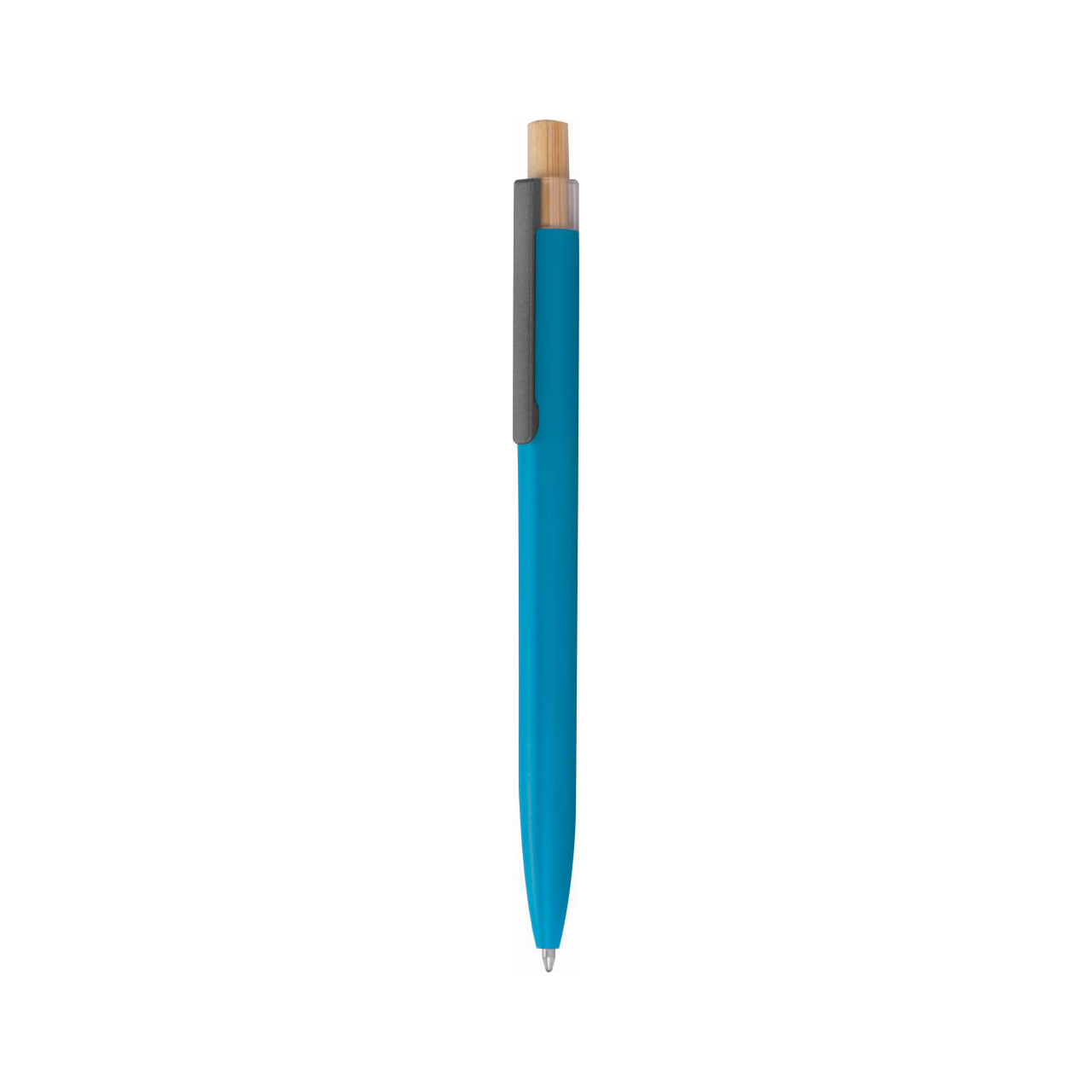 Kuličkové pero z recyklovaného hliníku s kovovým klipem a bambusovým tlačítkem. Pero má semi-gelovou náplň, díky které má pero sytou barvu a umožňuje lehké psaní. Rozměry: O 1 × 14,5 cm.
