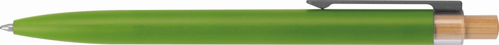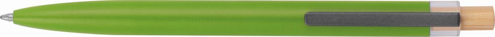 Kuličkové pero z recyklovaného hliníku s kovovým klipem a bambusovým tlačítkem. Pero má semi-gelovou náplň, díky které má pero sytou barvu a umožňuje lehké psaní. Rozměry: O 1 × 14,5 cm.