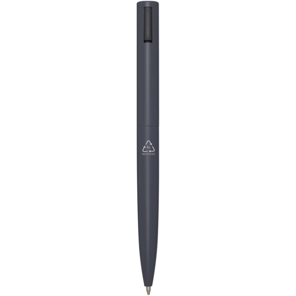 Propiska s horní částí těla vyrobenou z recyklovaného plastu a spodní částí z recyklovaného hliníku. Spona je vyrobena ze železa. Barva inkoustu: Modrá. Délka psaní: 1000 metrů. Rozměr hrotu: 1,0 mm. Rozměry: 14,5 x O 1,5 cm