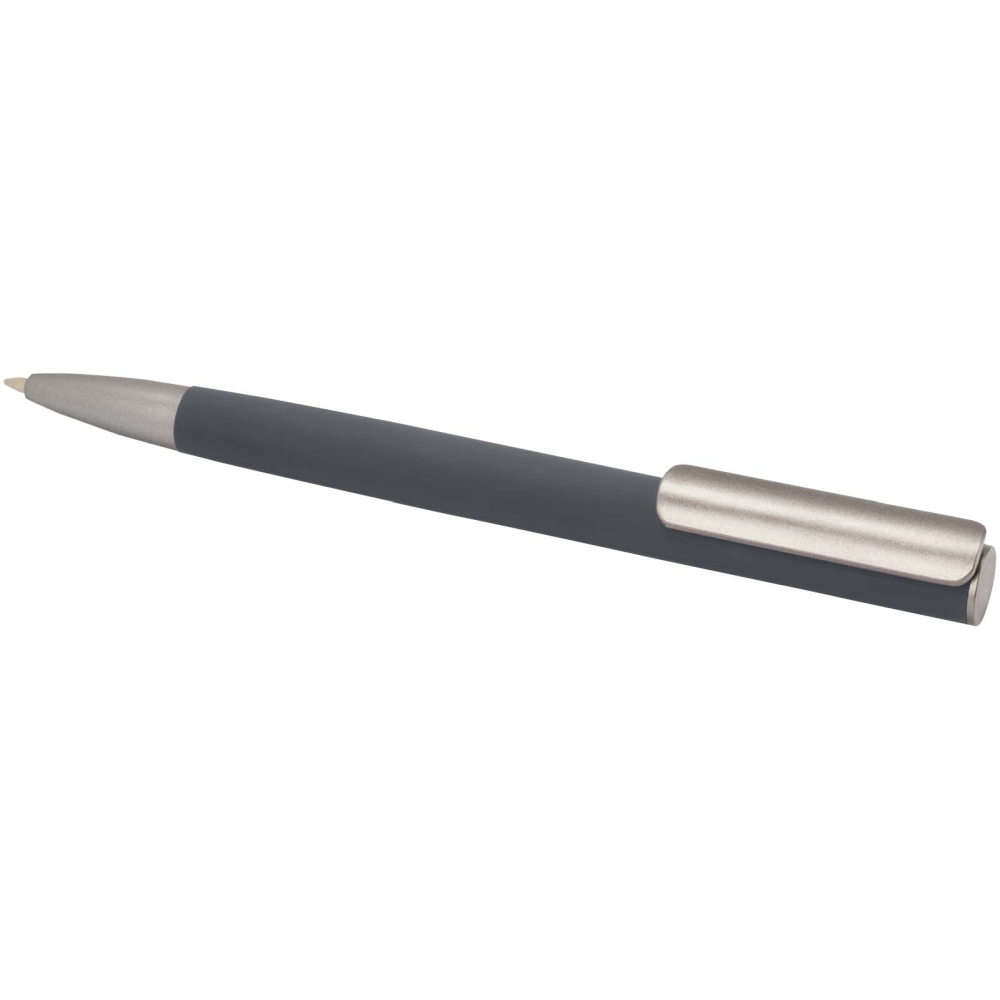 Propiska s tělem z recyklovaného hliníku a stříbrným klipem z ABS plastu. Snižuje také množství odpadu na skládkách a pomáhá šetřit přírodní zdroje s cílem snížit emise skleníkových plynů. Barva inkoustu: Černá. Délka psaní: 800 metrů. Rozměr hrotu: 1,0 mm. Rozměry: 14 x O 1,1 cm