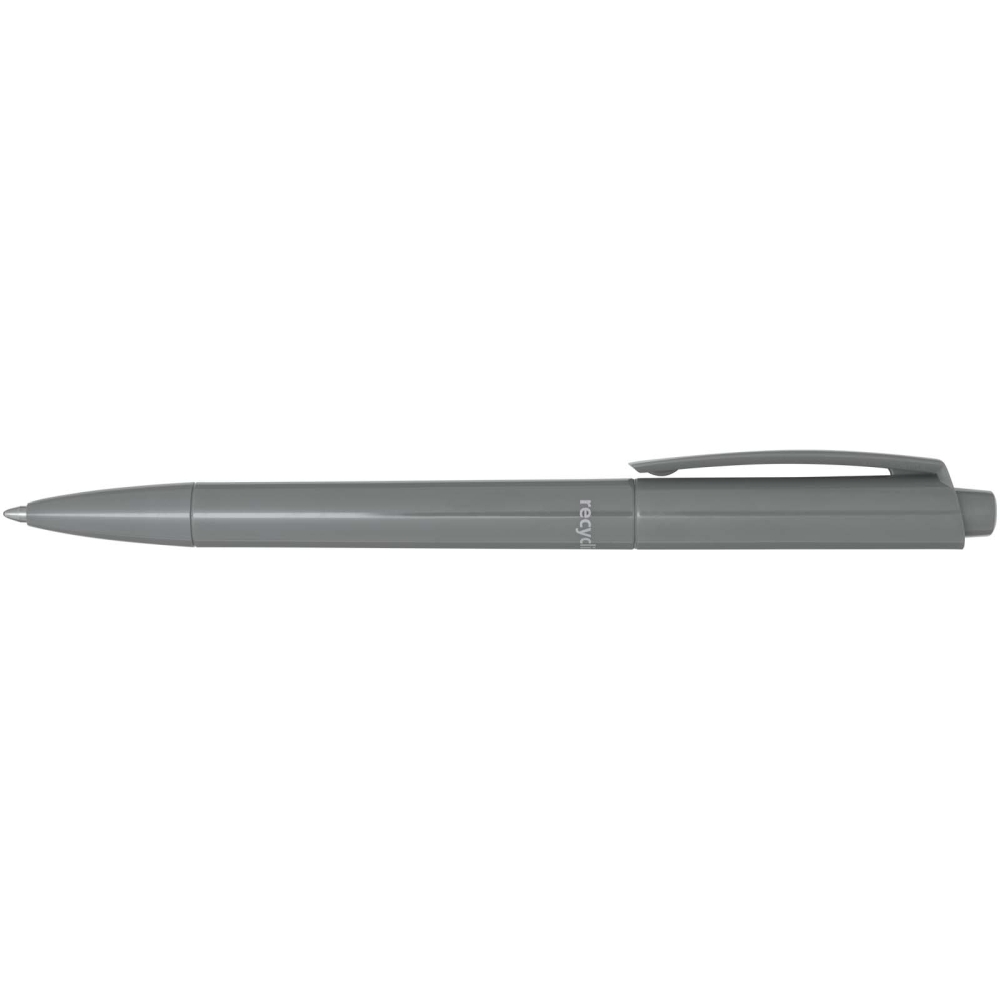 Propiska s tělem a sponou z recyklovaného plastu a hrotem z nerezové oceli. Barva inkoustu: Modrá. Délka psaní: 3000 metrů. Rozměr hrotu: 1,00 mm. Vyrobeno v Německu. Rozměry: 14,8 x O 1,05 cm