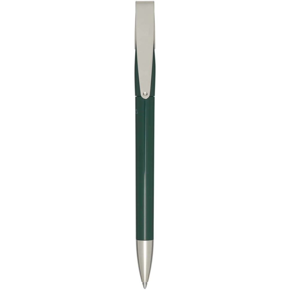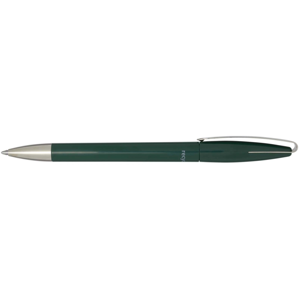 Propiska s tělem a sponou z recyklovaného plastu a hrotem z nerezové oceli. Barva inkoustu: Modrá. Délka psaní: 3000 metrů. Rozměr hrotu: 1,00 mm. Vyrobeno v Německu. Rozměry: 14,2 x O 1 cm